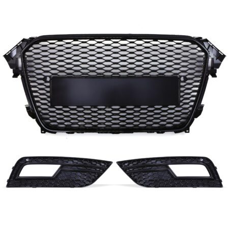 RS4 Style Front Honeycomb Grille Badgeless With Surrounds Black – Audi A4 B8.5 12-16