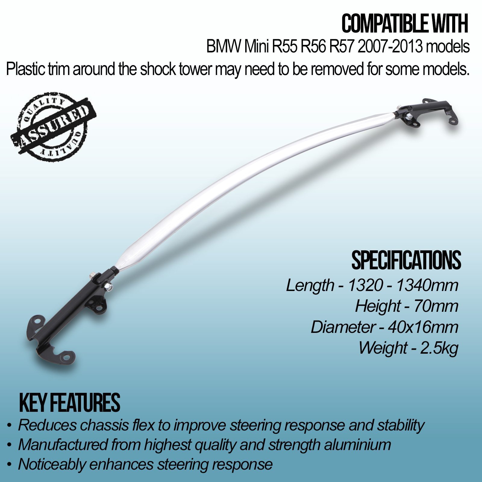 Please note – Plastic trim around the shock tower may need to be removed for some models. Colours may vary subject to availability.