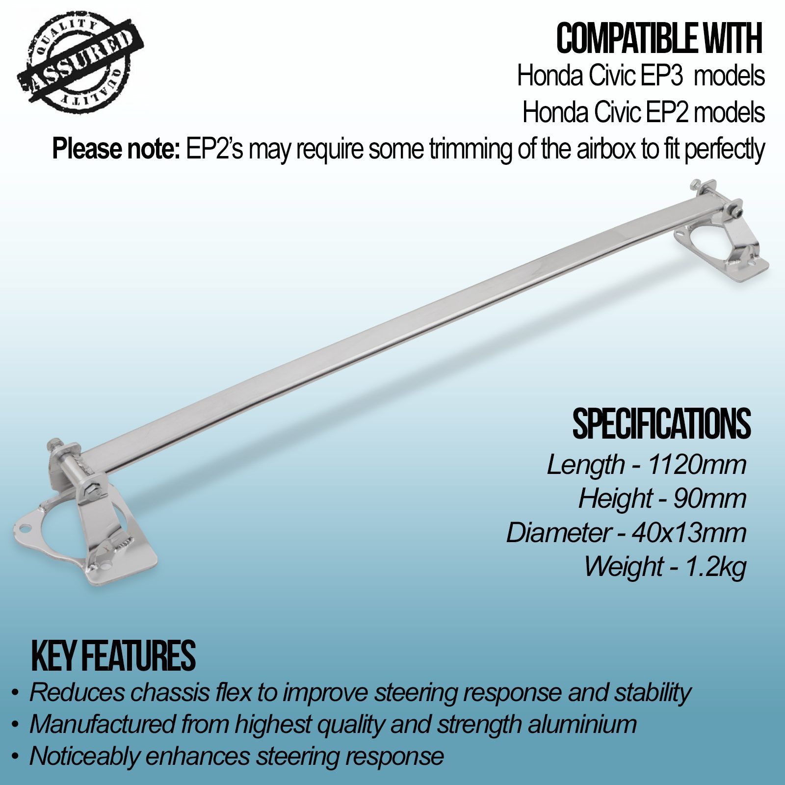 Please note: EP2’s may require some trimming of the airbox to fit perfectly