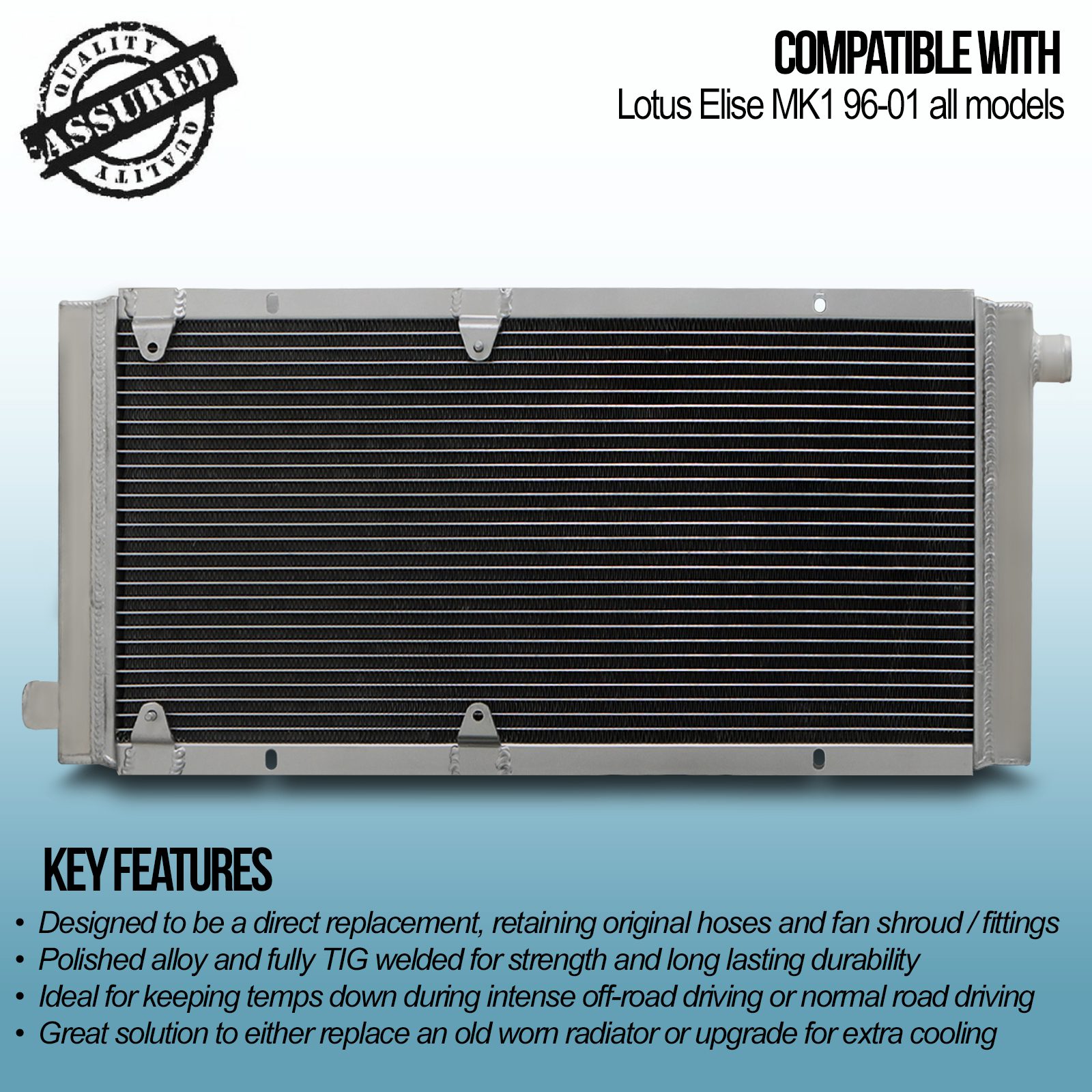 • Twin channel aluminium core will achieve up to 30% more cooling capability than the standard radiator