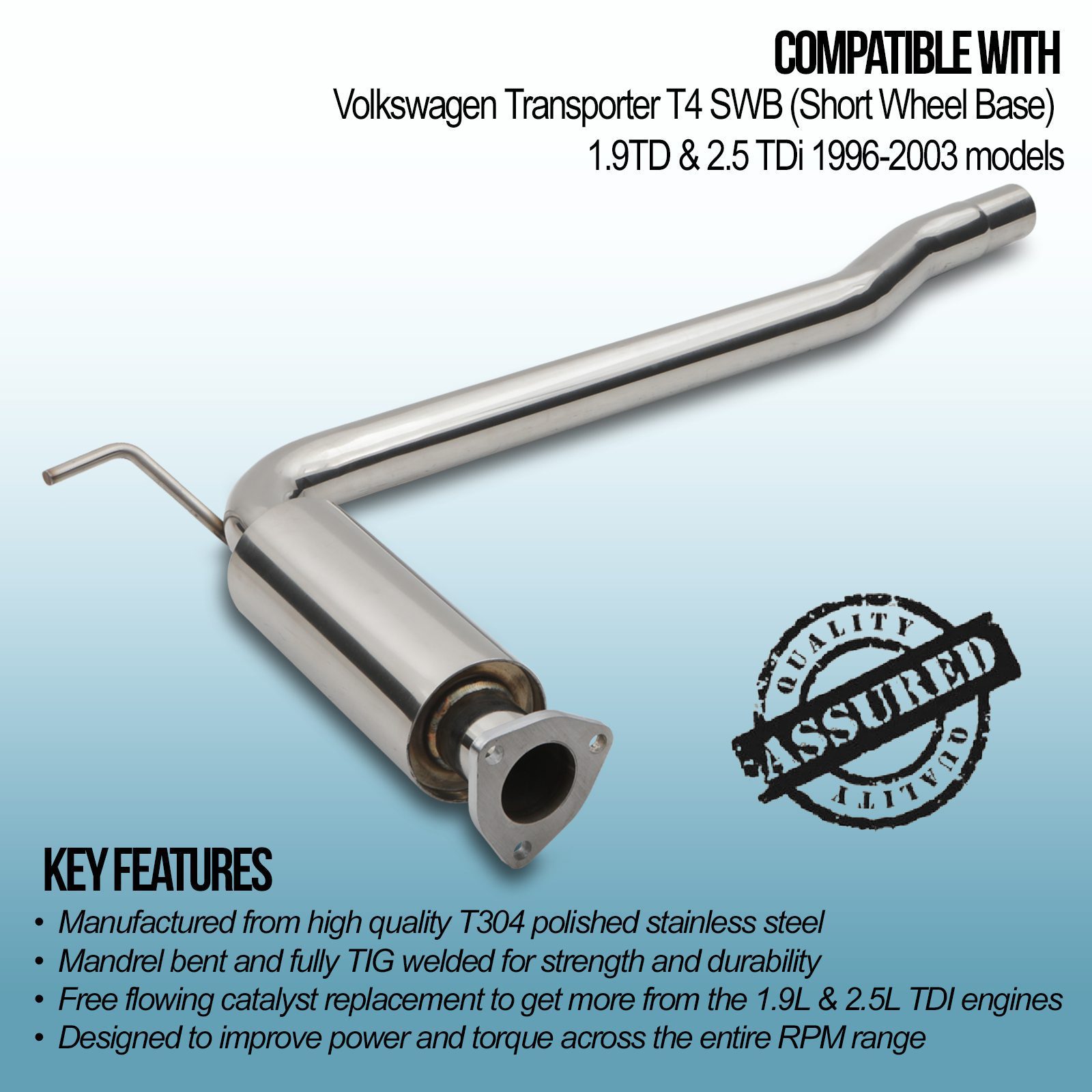 • Free flowing catalyst replacement to get more from the 1.9L and 2.5L TDI engines