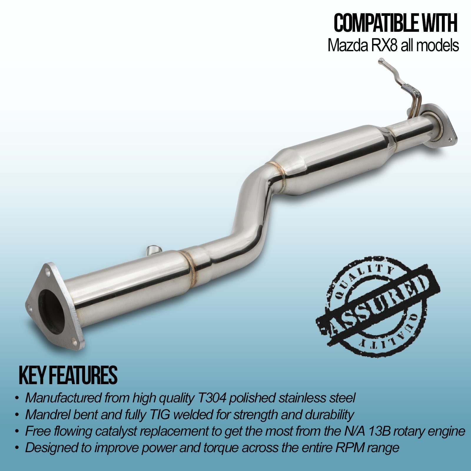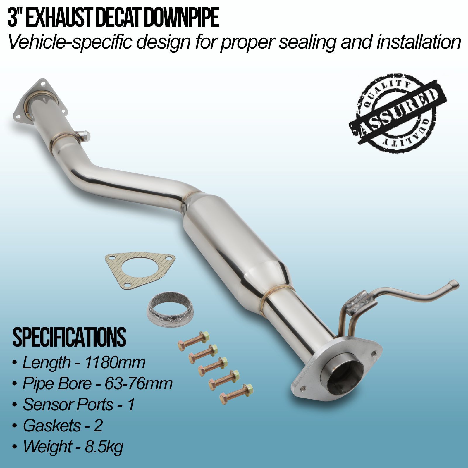 This decat tapers down to 2.5″ to meet the OEM system