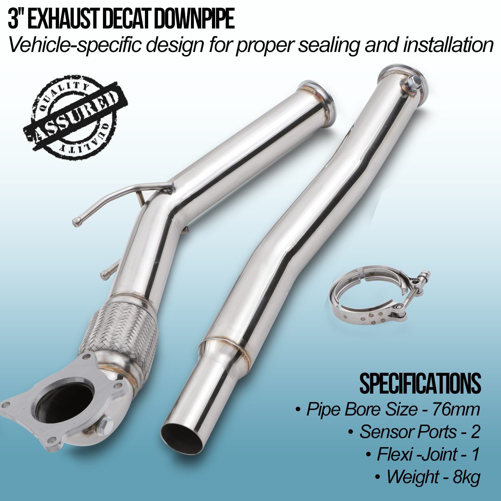 3″ Exhaust Decat Downpipe compatible with VW Golf MK5 GTI 2.0T 2004-2010 models, an easier fitting replacement for the OEM downpipe and offers significant performance gains. The built-in flexi on our 3″ Exhaust Decat Downpipe ensures you get performance gains coupled with durability and reliability.