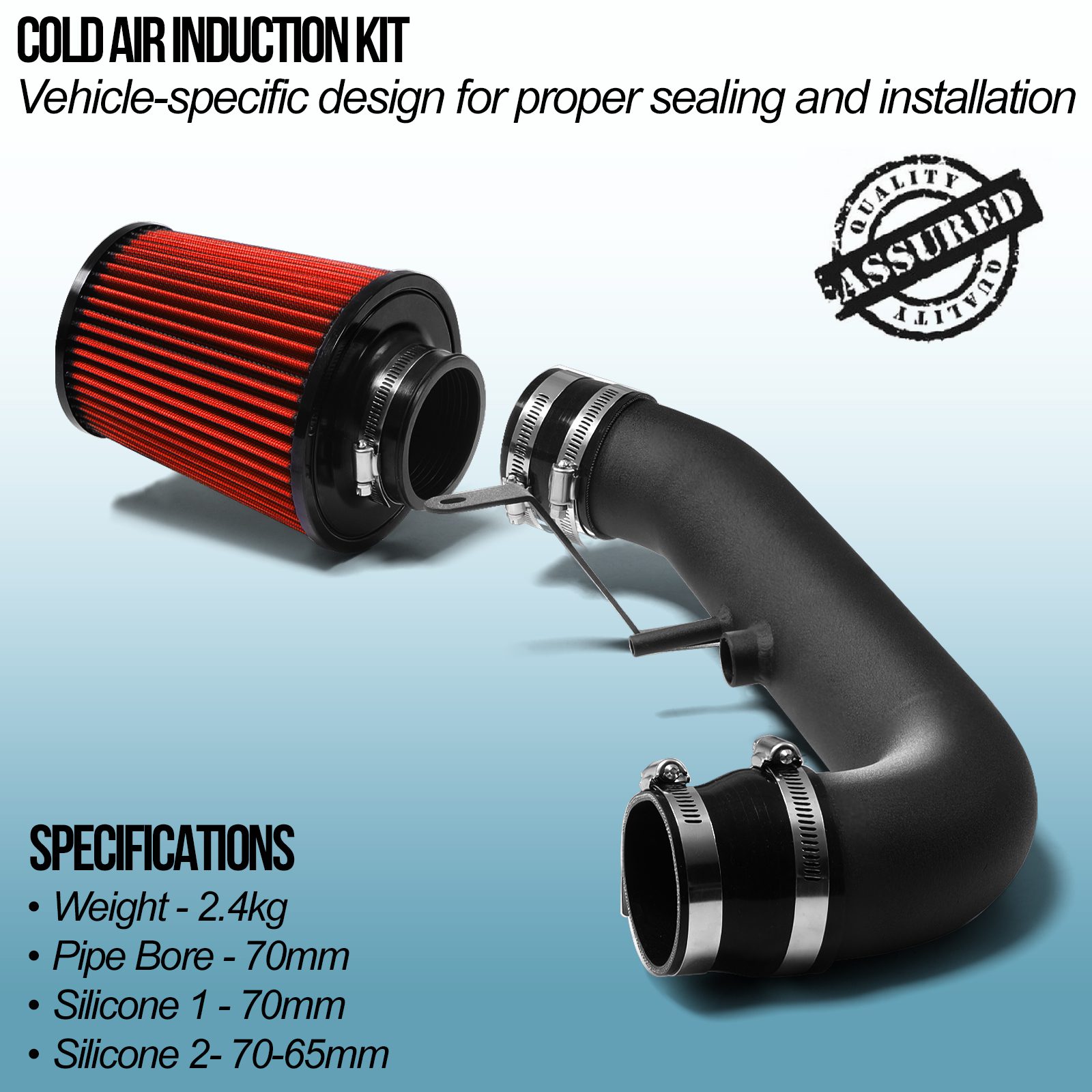 Direnza Cold Air Induction Kits include lightweight alloy pipework mandrel-bent for accurate placement on your vehicle, and coated with a premium grade, black textured finish for a sleek appearance.