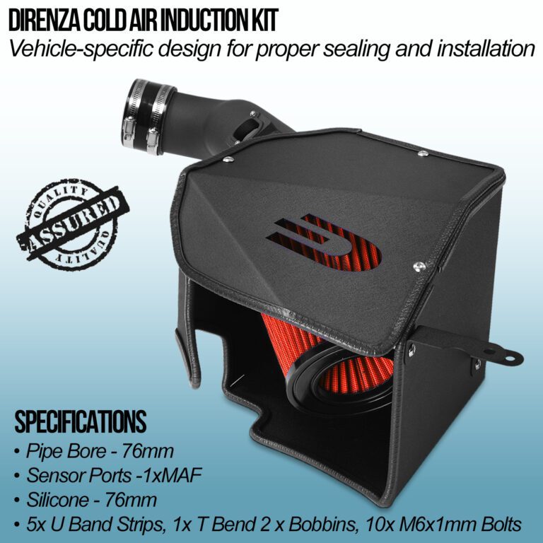 Direnza Cold Air Induction Kits include lightweight alloy pipework mandrel-bent for accurate placement on your vehicle, and coated with a premium grade, black textured finish for a sleek appearance.