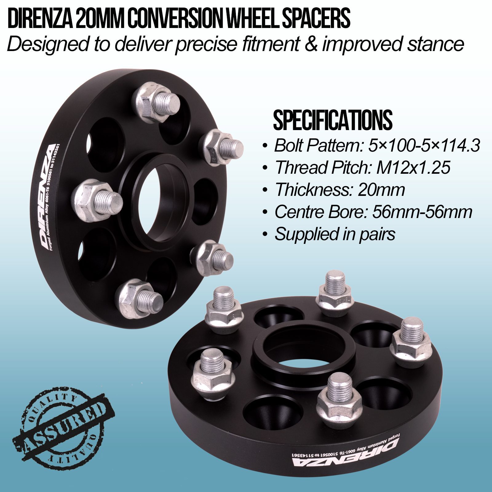 Direnza 20mm Wheel Spacers – Pair – Subaru BRZ Toyota GT86 to Subaru STI | 5×100-5×114.3