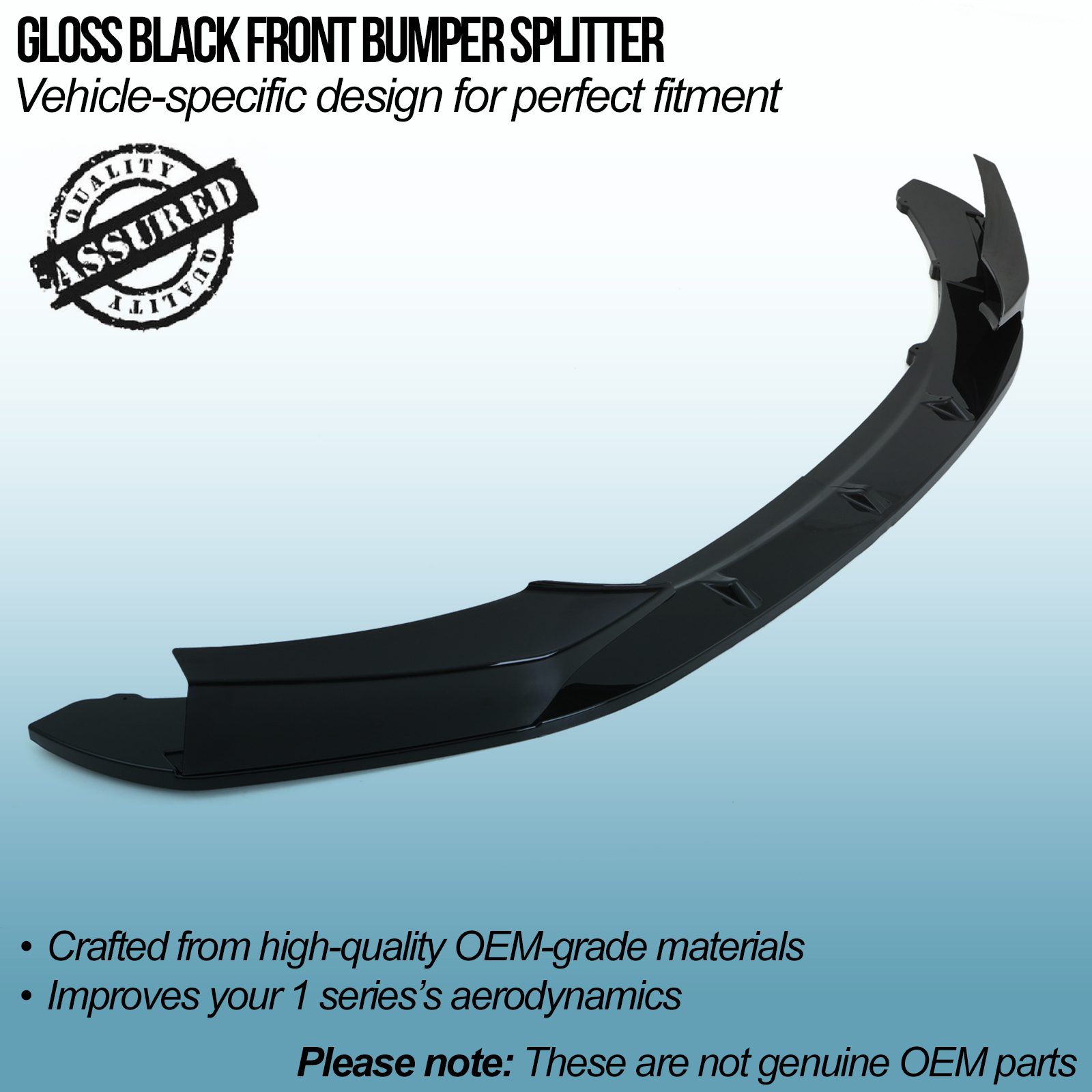 Gravity Performance front splitters are designed to provide a quick and easy upgrade, with seamless fitment onto the OEM bumper. Our splitters enhance the front end of your vehicle with a lower, more aggressive look whilst aiding downforce and handling characteristics.