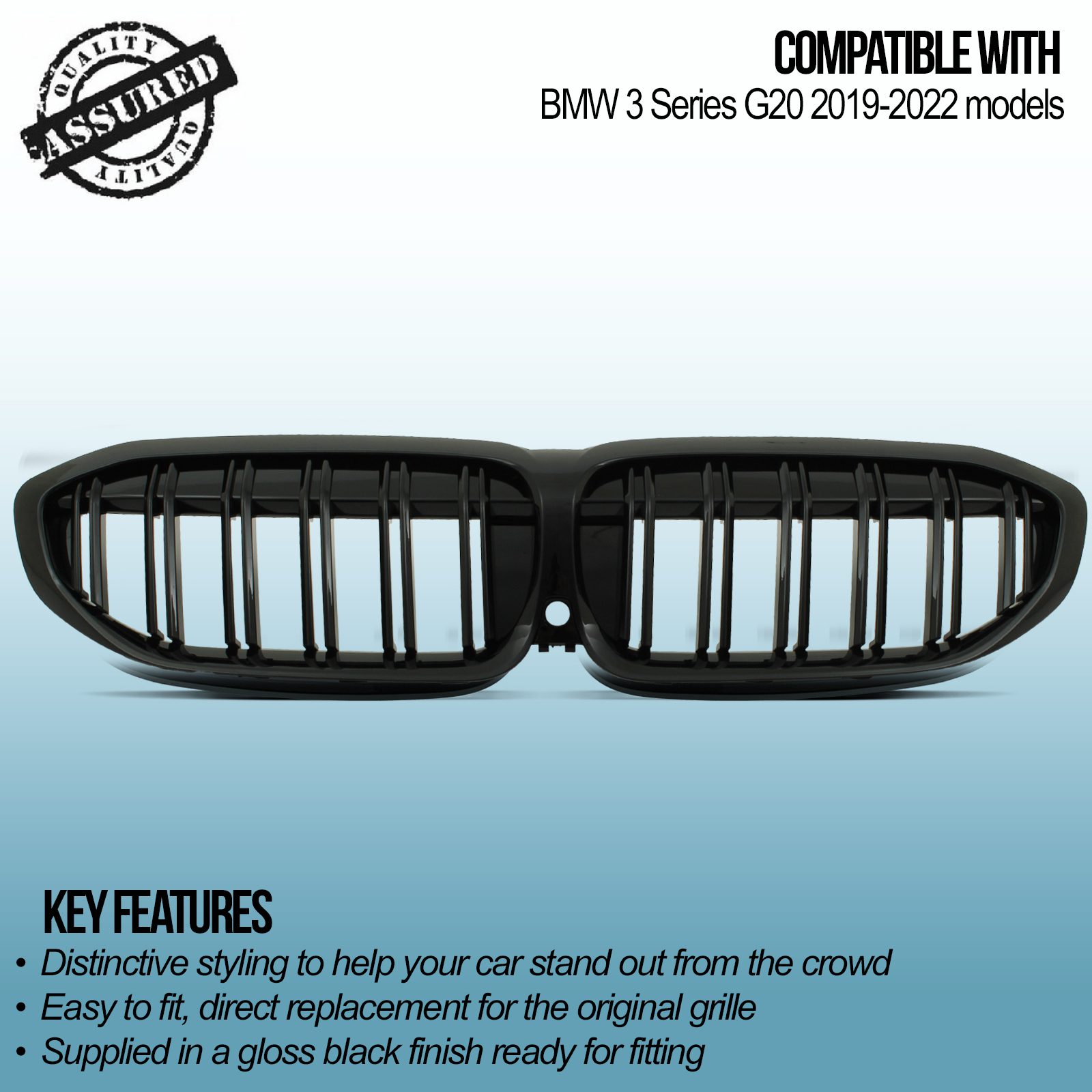 Gloss Black Front Double Kidney Grilles – BMW 3 Series G20 19-22 £31.99