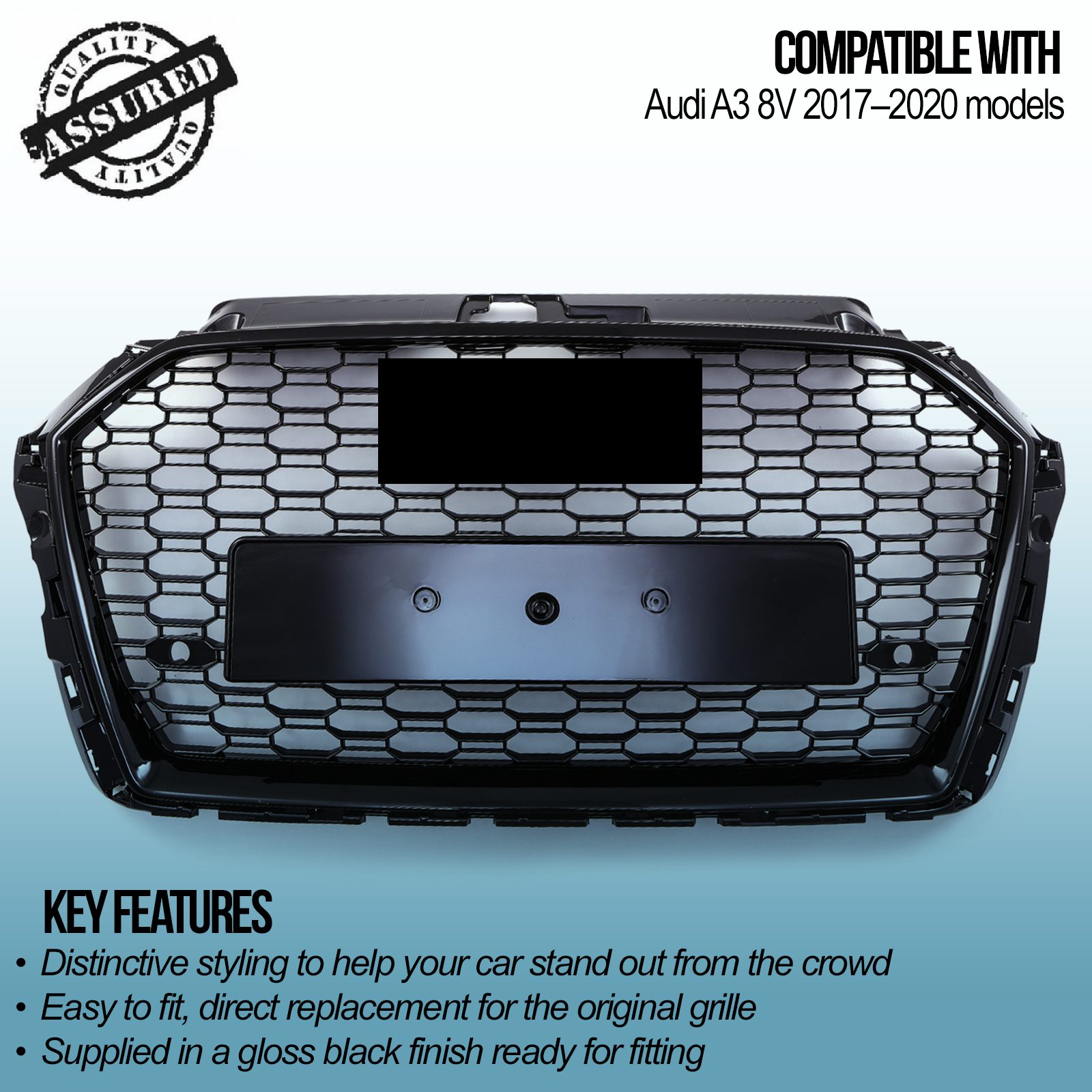 RS3 Style Front Honeycomb Grille Gloss Black – Audi A3 8V 17-20