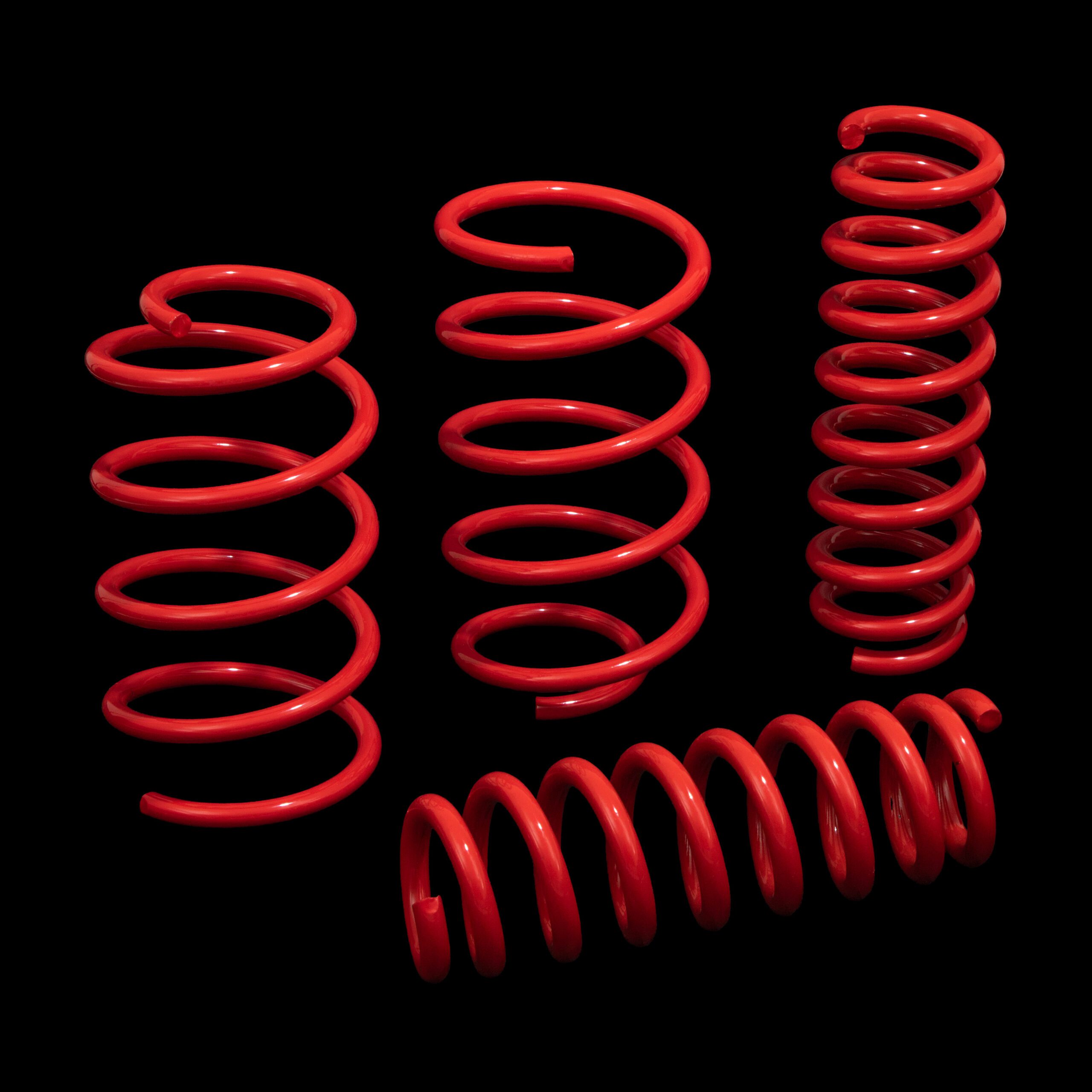 Direnza Performance Springs offer: Lower Centre of Gravity | Improved looks | Progressive Spring Rates | Corrosion Resistant Red Coating | Excellent Value for Money | 5-Year Warranty.