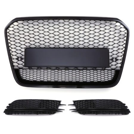 RS5 Style Badgeless Front Honeycomb Grille & Surrounds Black – Audi A6 C7 11-15