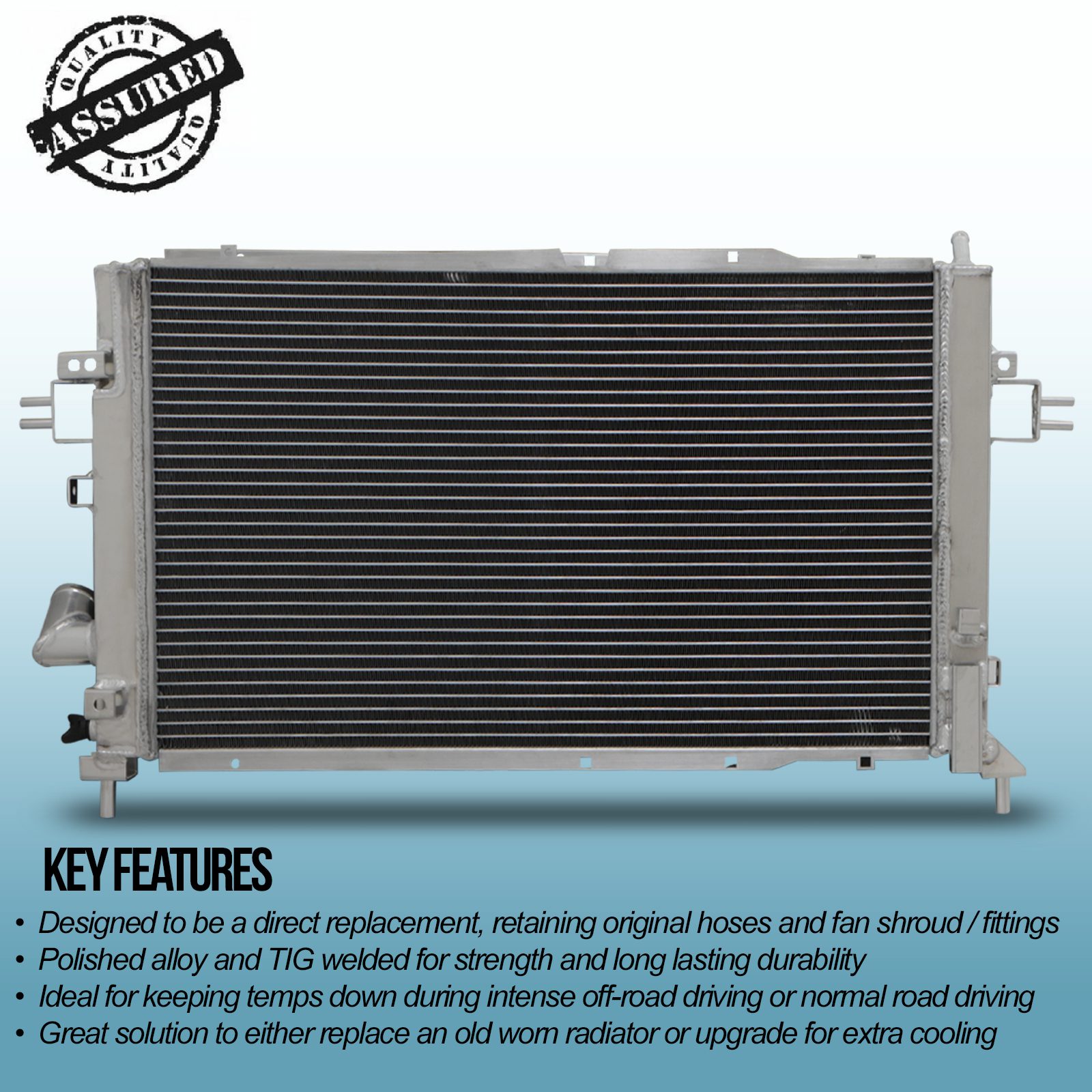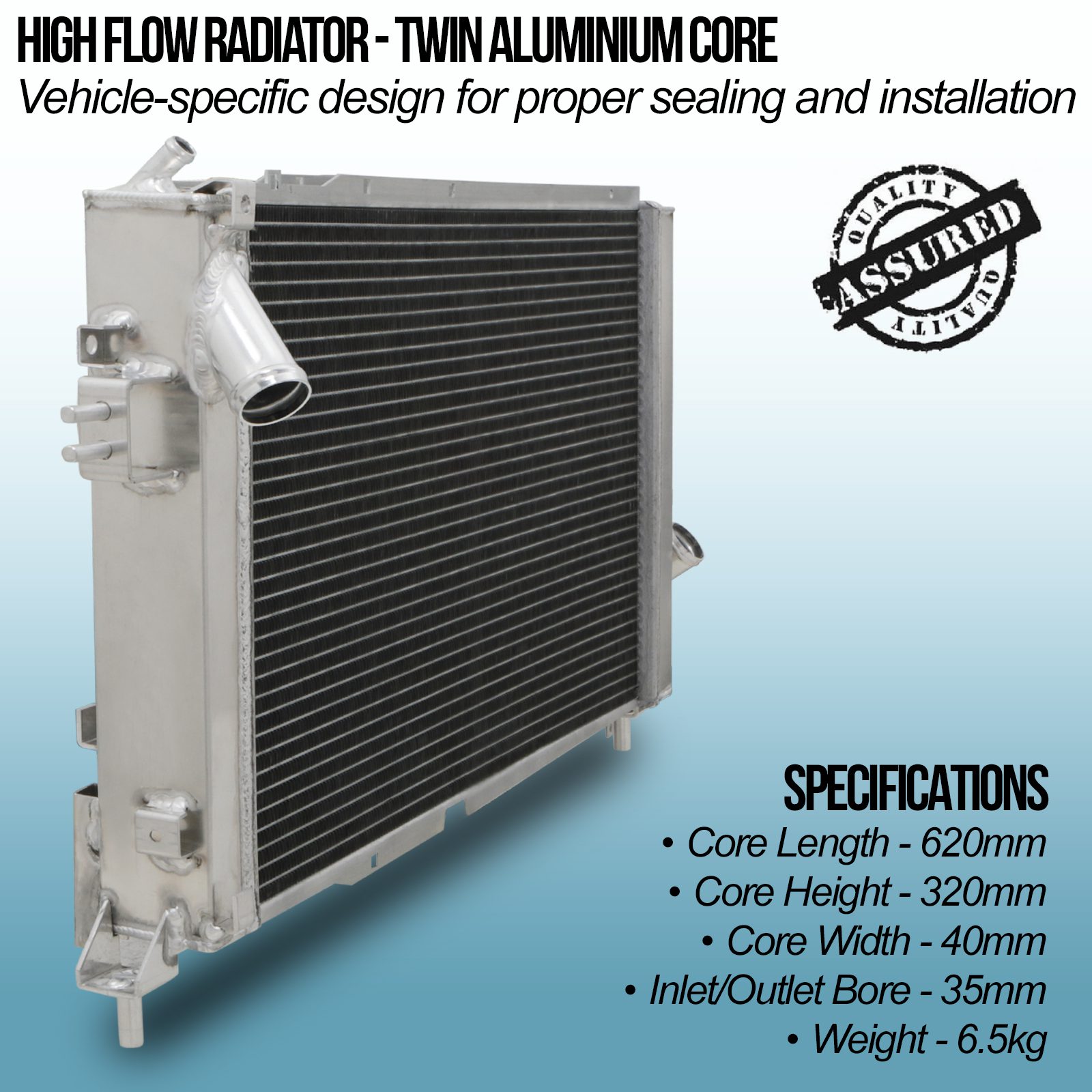 • Twin core aluminium core will achieve up to 30% more cooling capability than the standard radiator.
